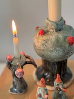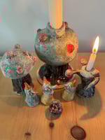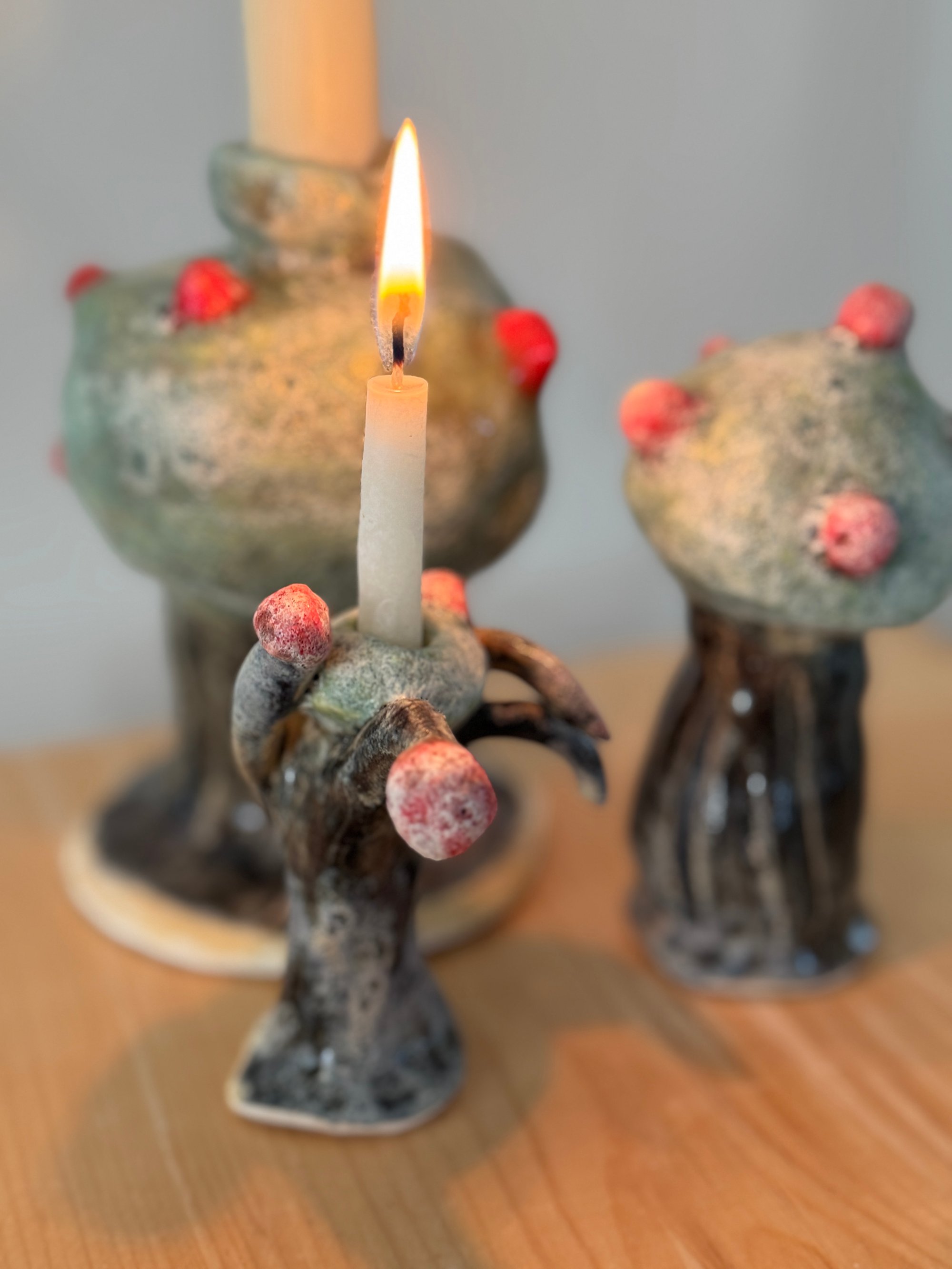 The fairies love autumn because they get to collect apples. Sold as a set of three trees and three fairies with their apple basket. Comes with two candles.