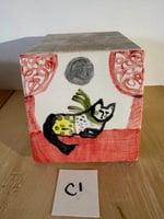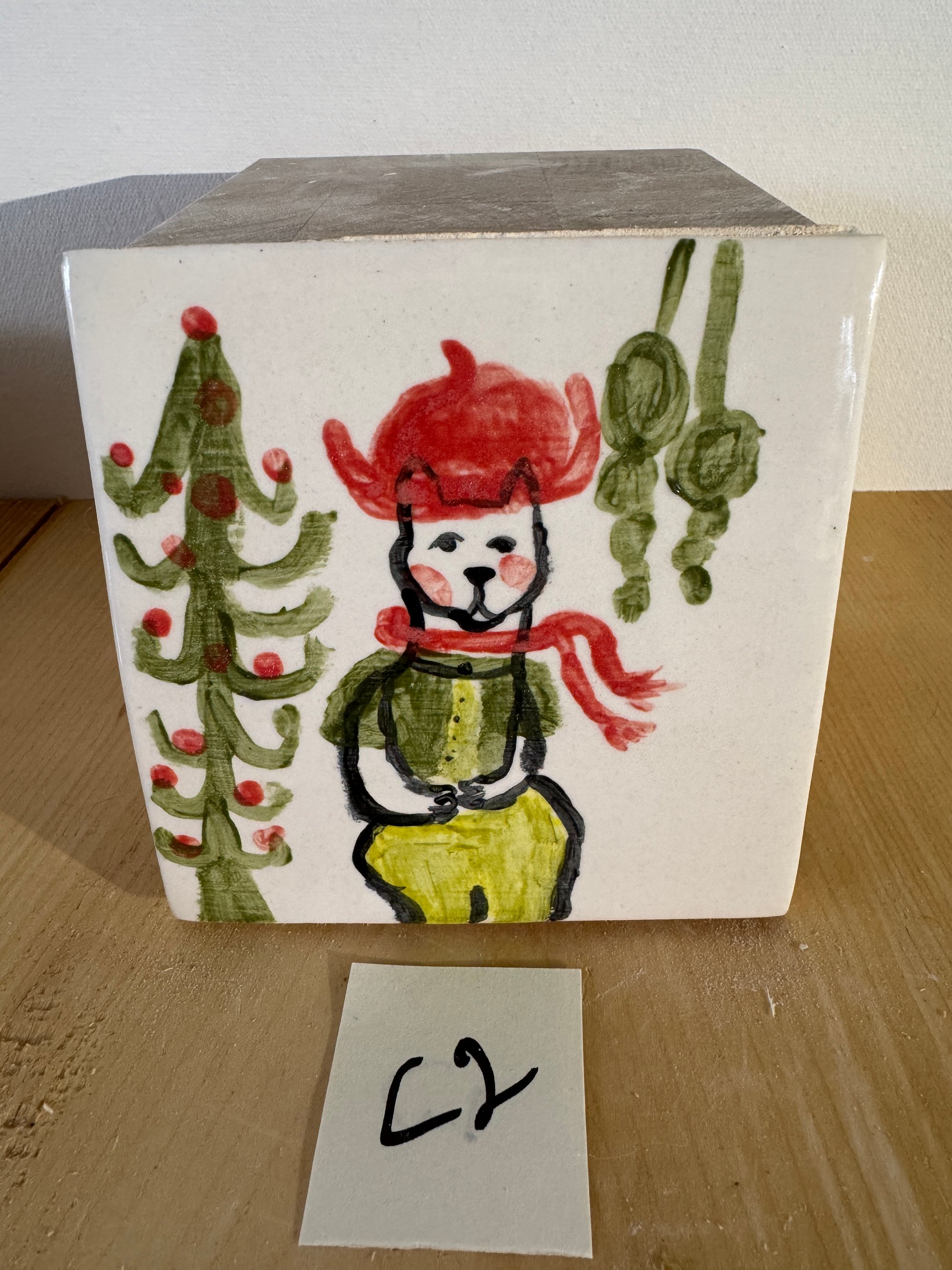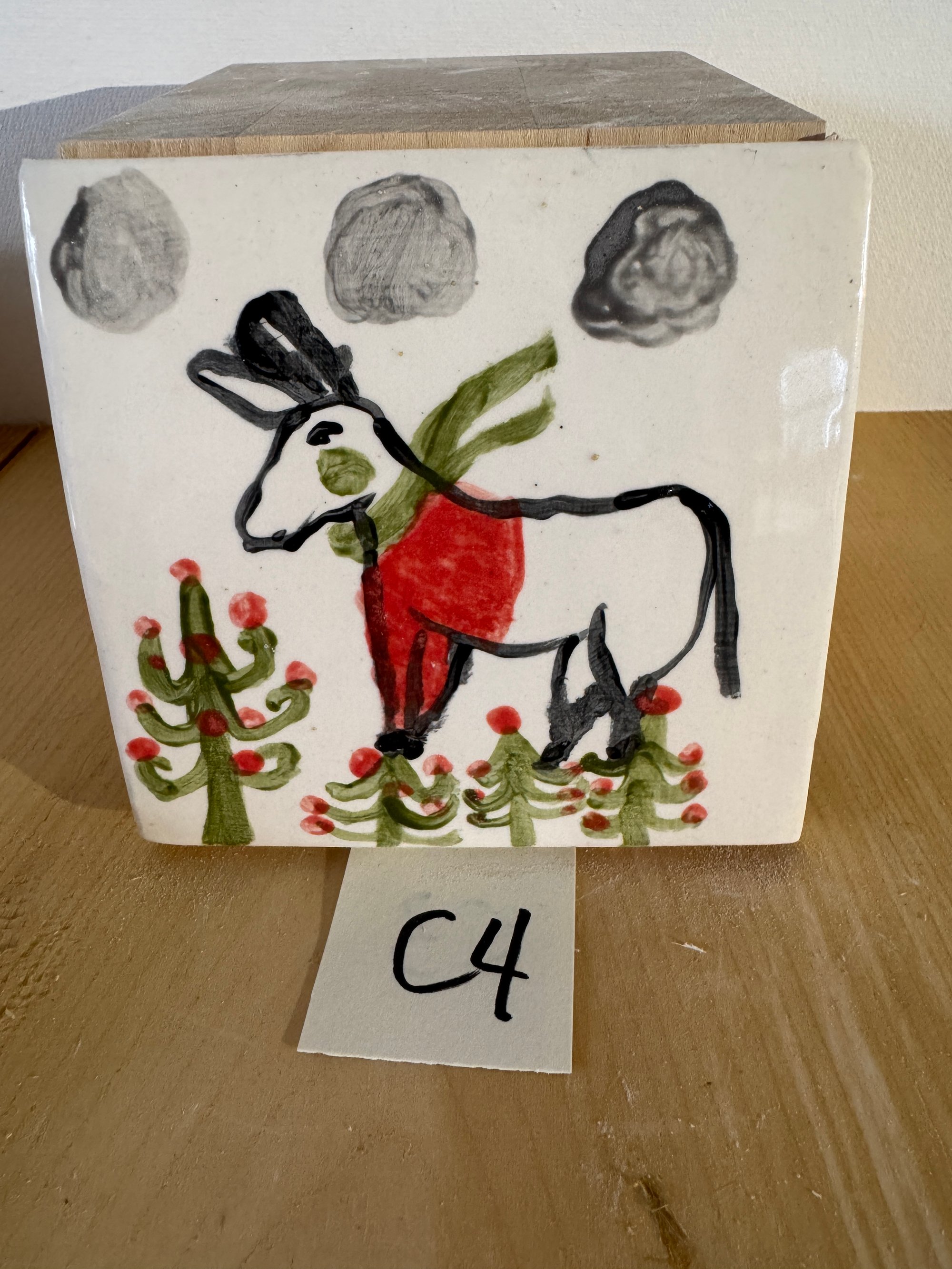 White earthenware 4" tiles or trivets. Almost 1/2 thick. These are handmade so there are slight variations. Glossy finish.