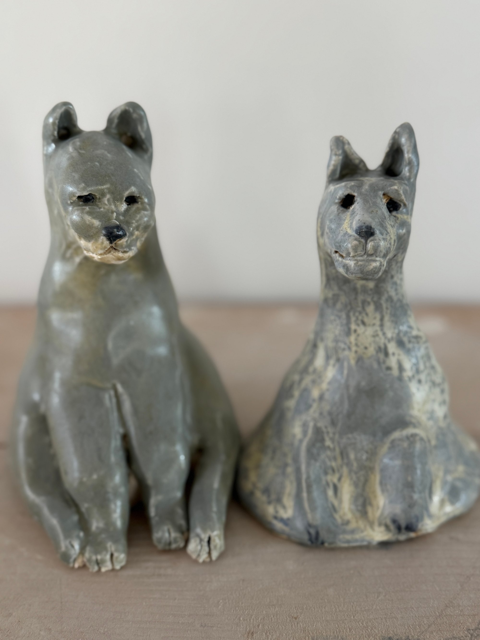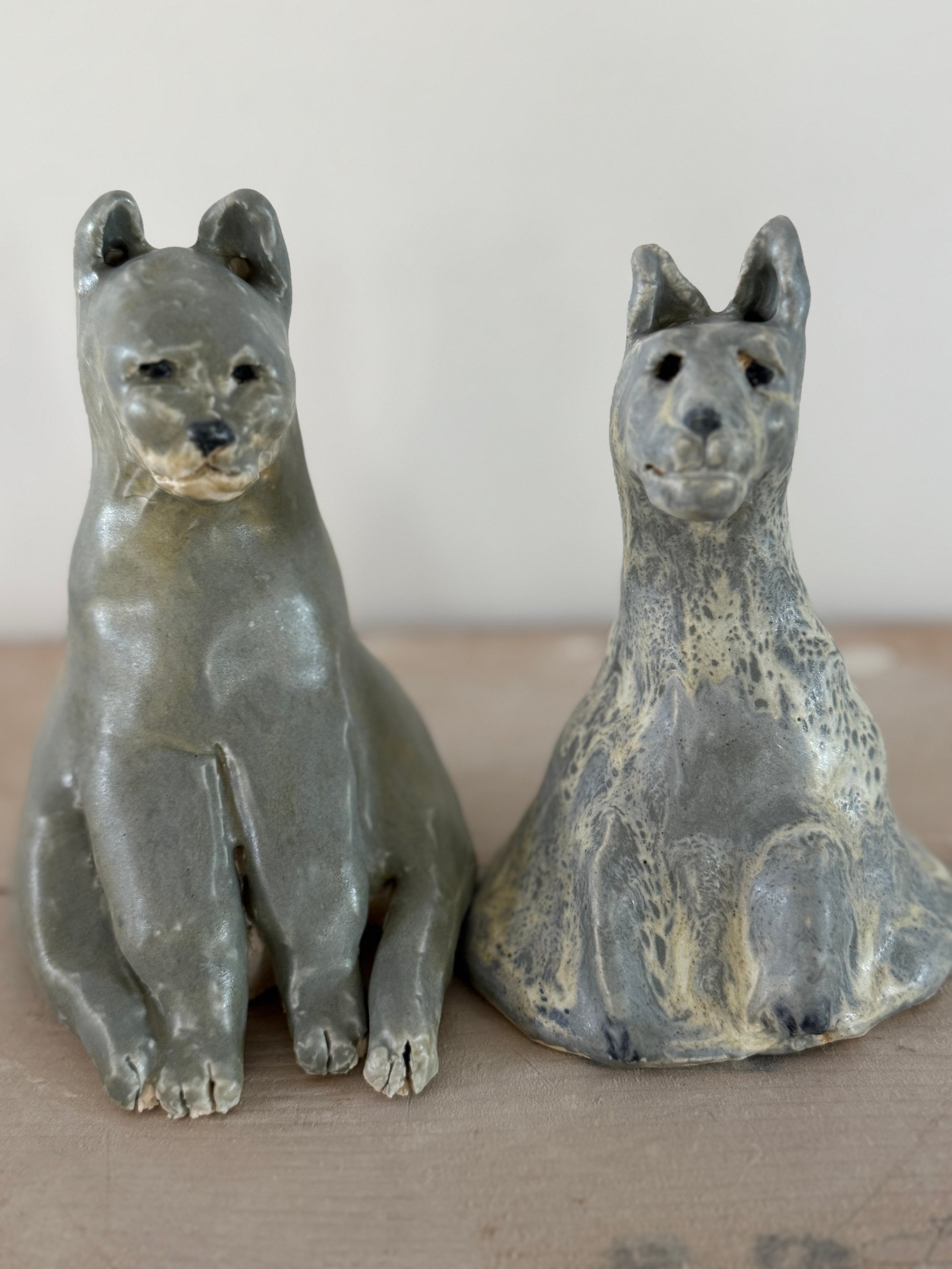 two beautiful blue cats-I call it blue, it is a beautiful grey-blue. Please note: tails will be added made of real hair from the animals here at Apifera. Give a few extra days for me to add those once you purchase.