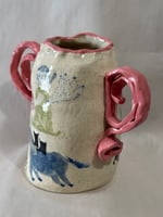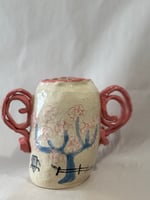 8" tall x 7" wide at handle, 3" opening. Gloss glaze.