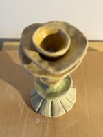 Clay: Little dachshund and his yellow tulip candle holder[sold as a pair]