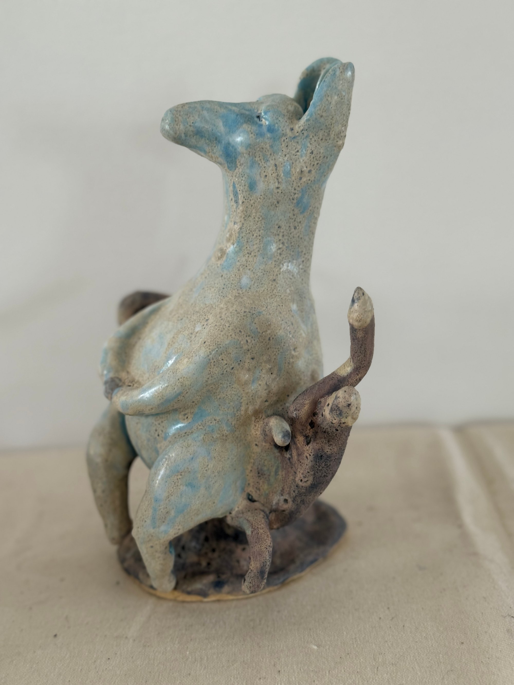 10" at highest. 6" wide. Stoneware fired multiple times for earthy effect.