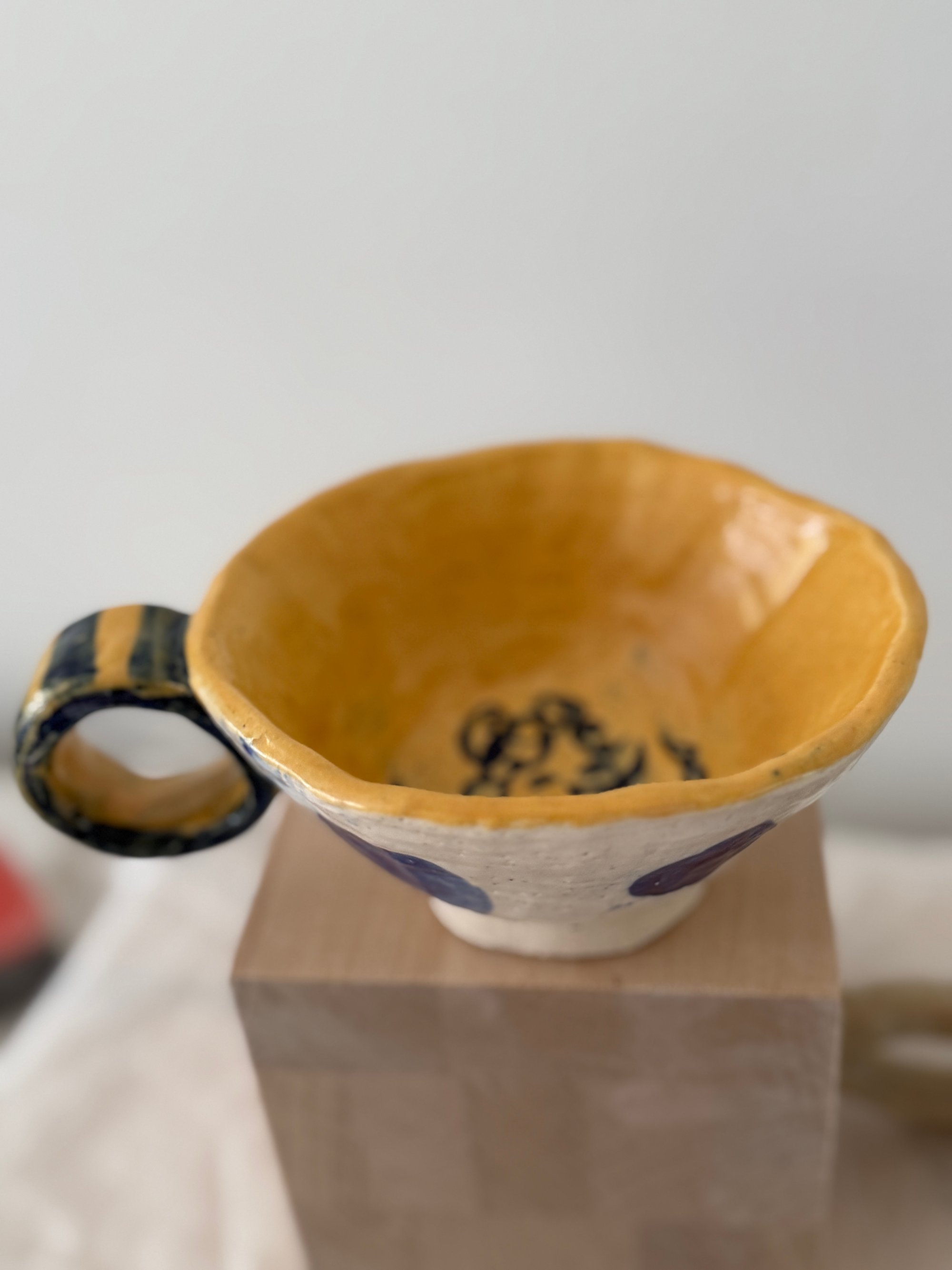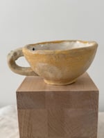 Mulitple glazes to achieve natural stone like on one of the mugs.
