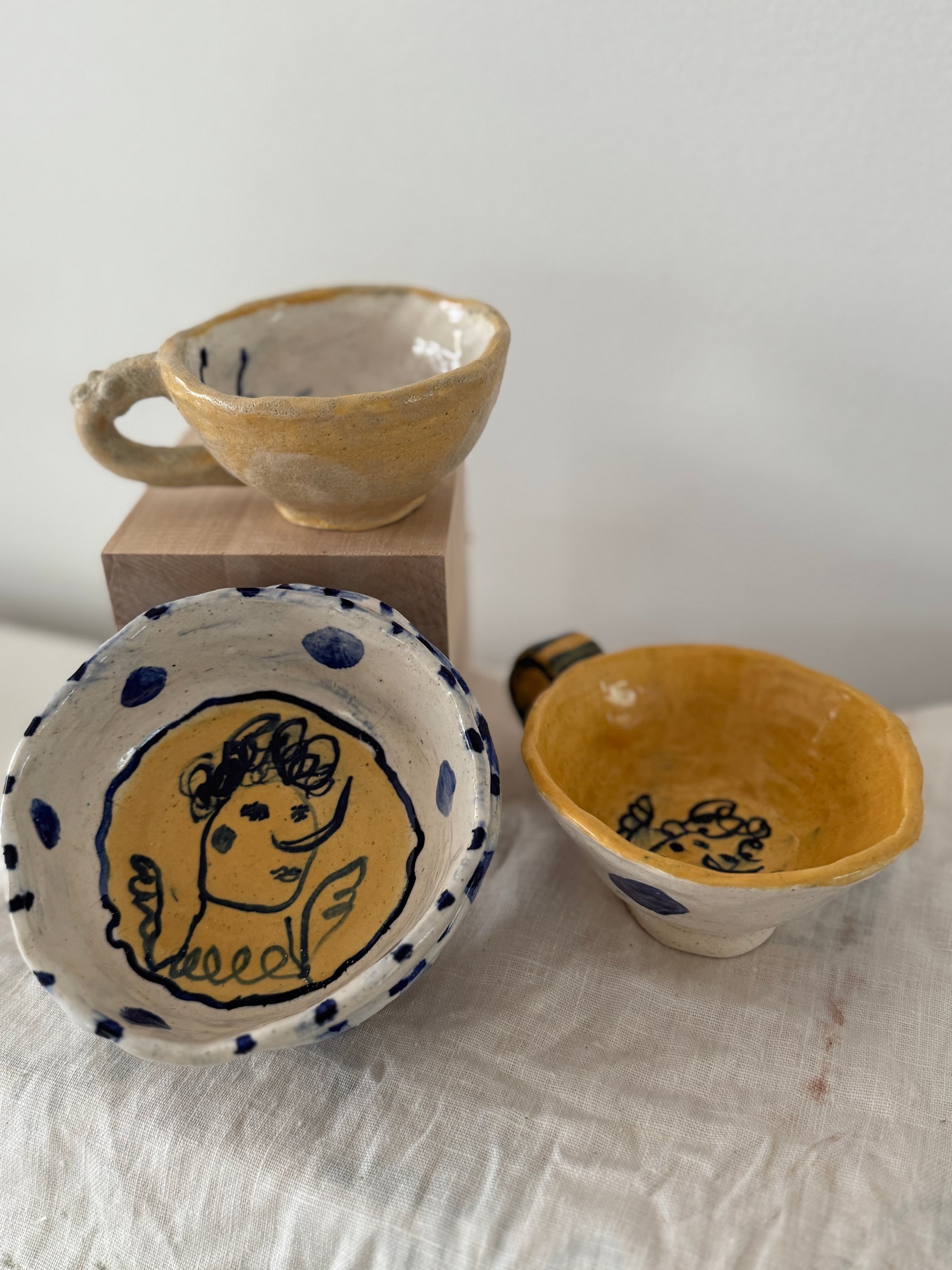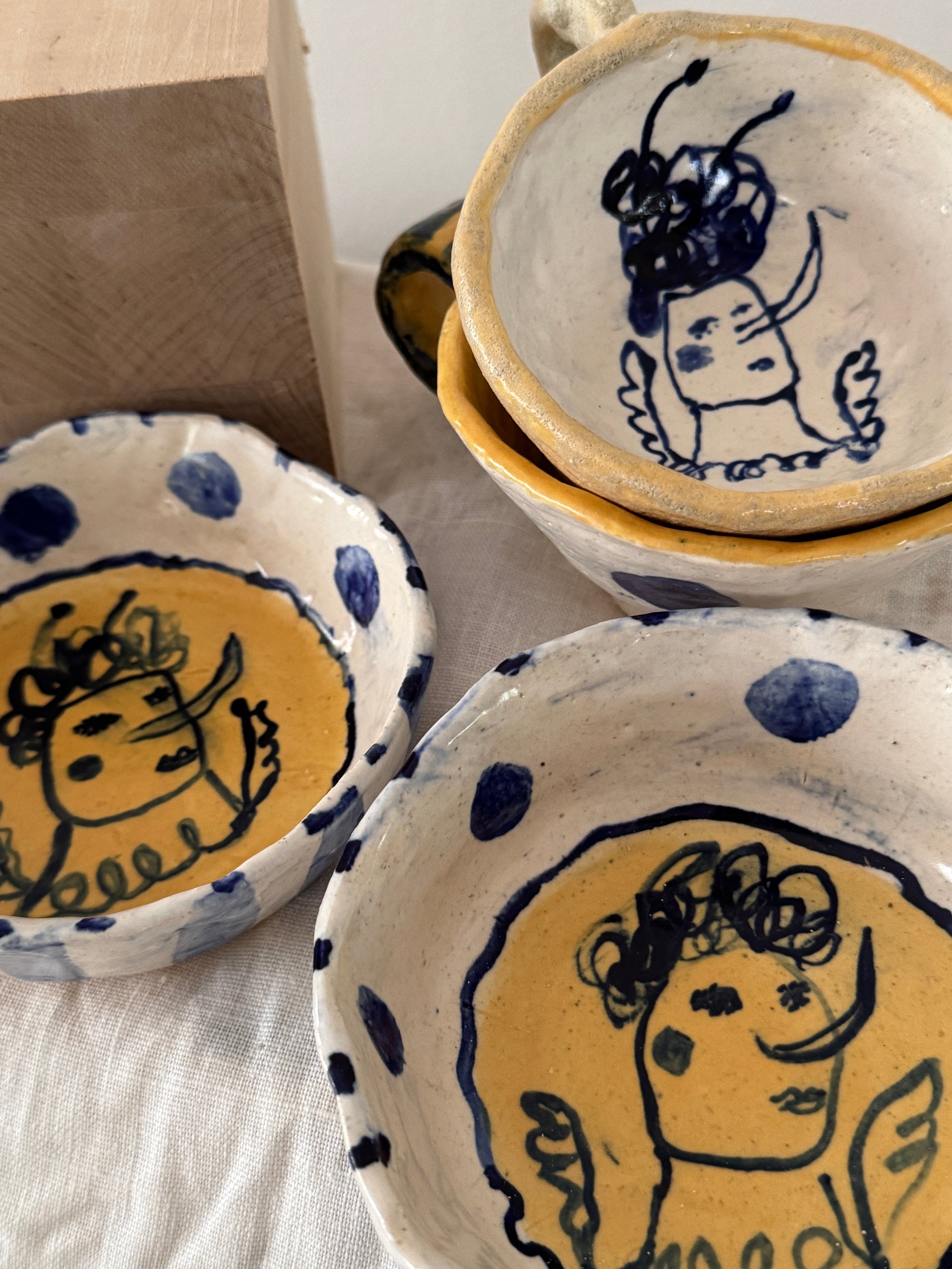 Price is for the entire set of 4 items: 2 cups, 2 bowls. For all the fairy girls out there to brighten up breakfast.