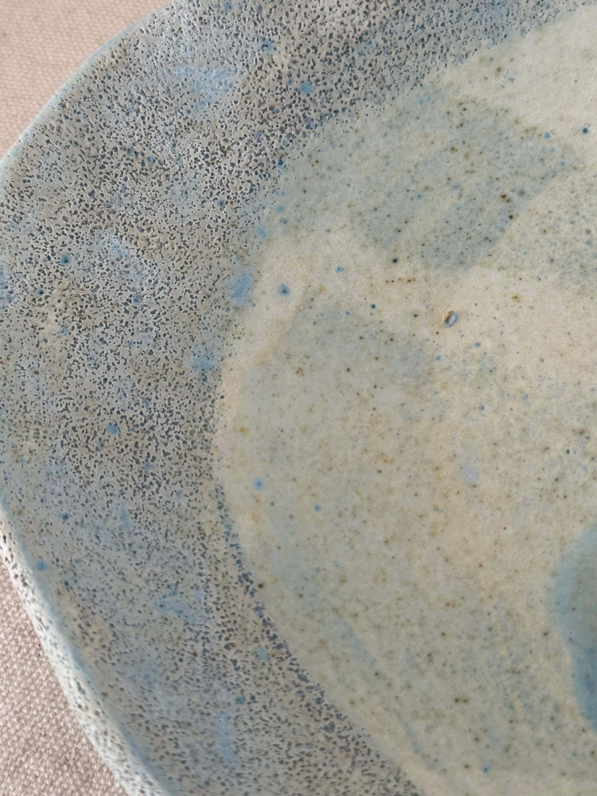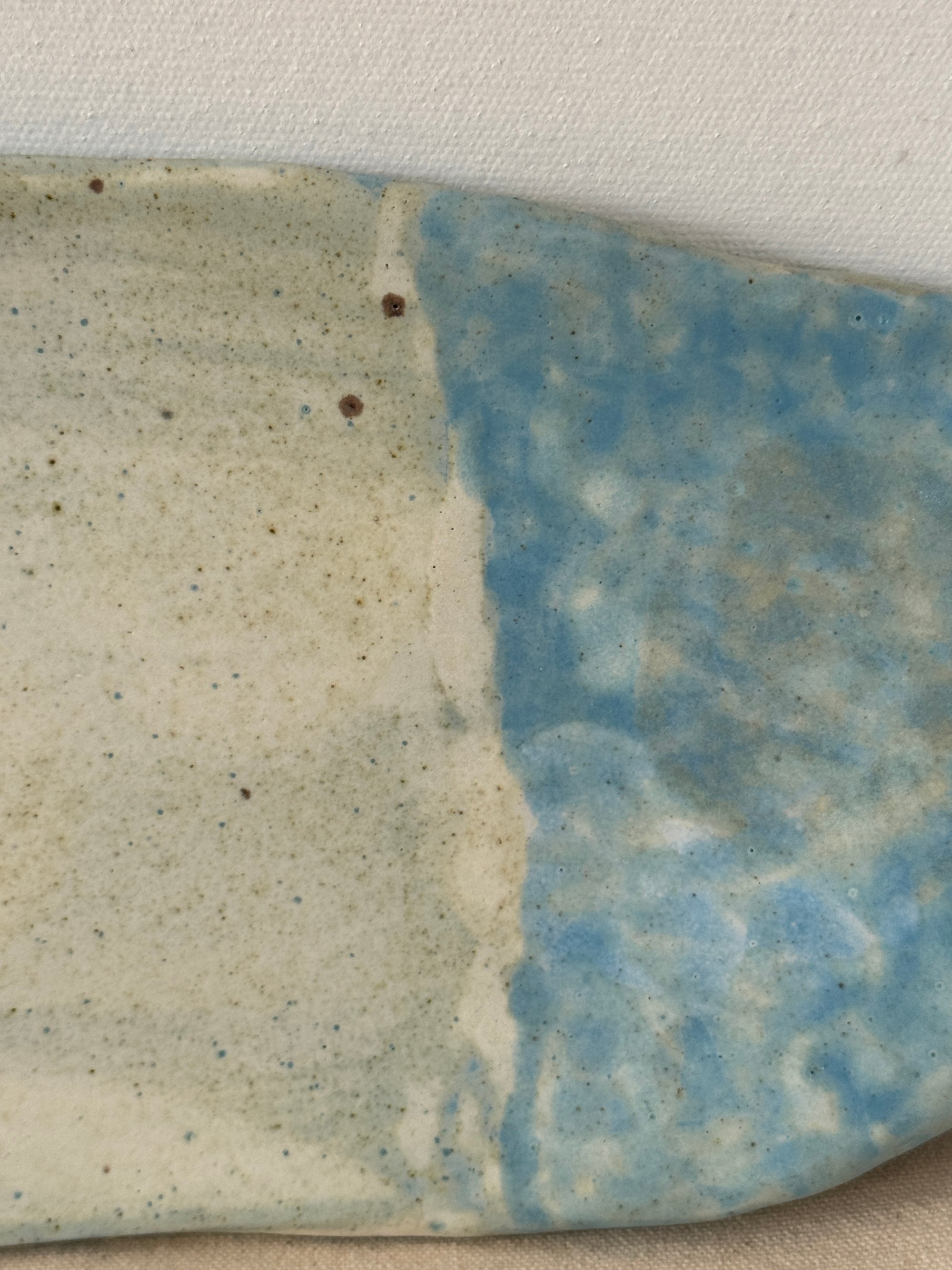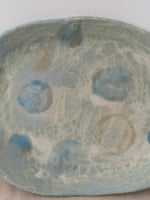 Hand built, whimsical, no two are alike, multi fired and multi glazed to try to capture the cloudy skies over the coast with hints of clouds.
