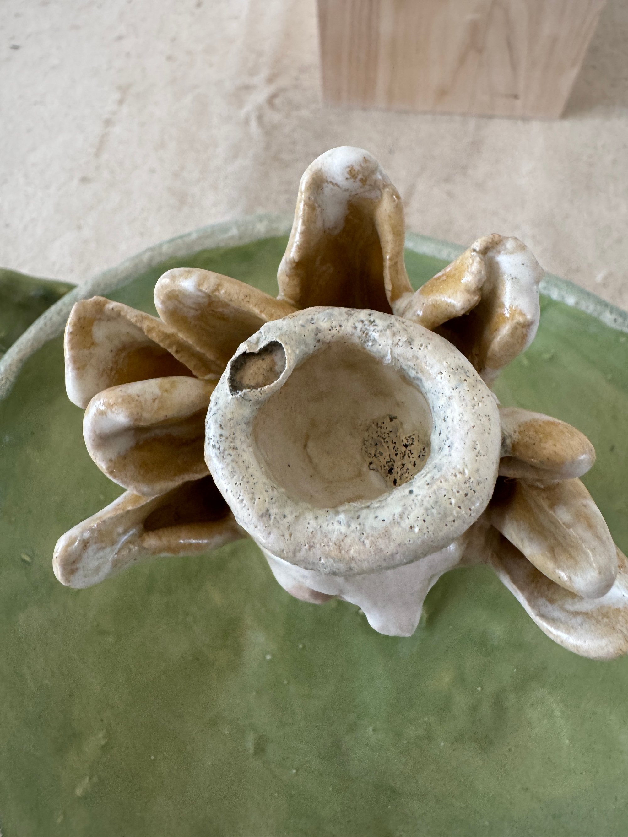 A sweet sunflower face to share treats with at the dinner table. 7" high and 10" wide.